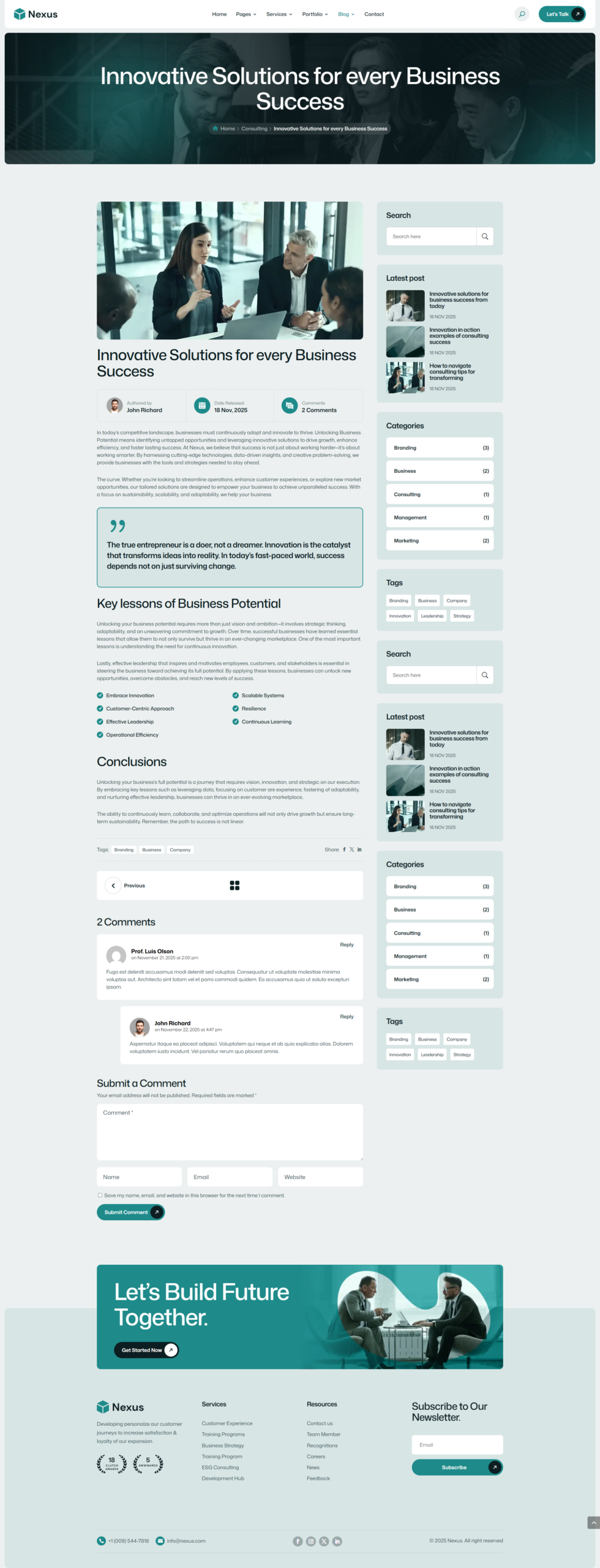Nexus is not just a theme, it is a complete website system. From corporate websites and service companies to portfolios, blogs and large content platforms, Nexus adapts effortlessly to any business model or industry.